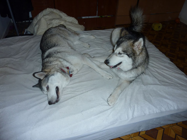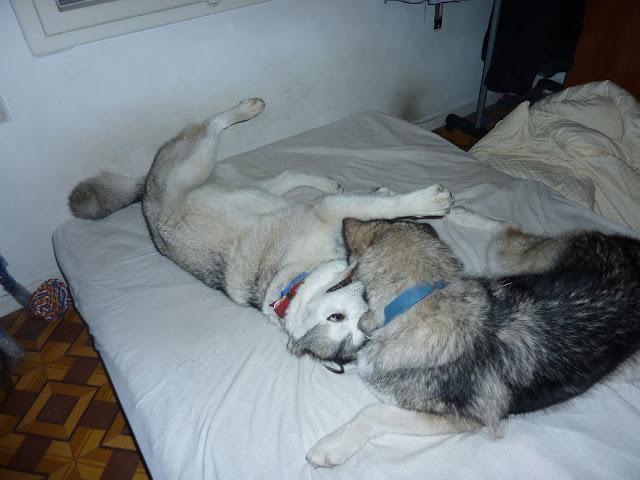 Морозными Средиземноморскими ночами очень нужно именть маламута под одеялом. (Самое интерестное, я заснула, а она так и осталась под одеялом в этой же позе. Мне уже стало жарко, и я повернулась на другой бок, а ей хоть бы хны)